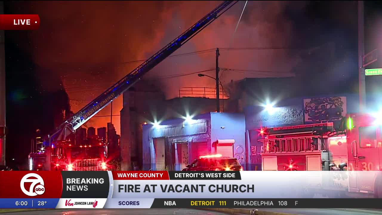 Chopper 7 captures footage of massive vacant church fire on Detroit's west side