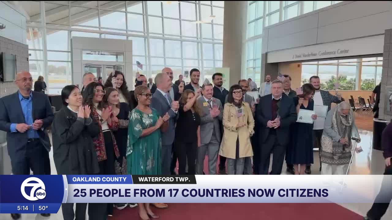 WATERFORD TOWNSHIP, Mich. (WXYZ) — Dreams became reality for 25 people from 17 different countries who took the oath to become naturalized U.S. citizens during an emotional ceremony at Oakland County International Airport.
