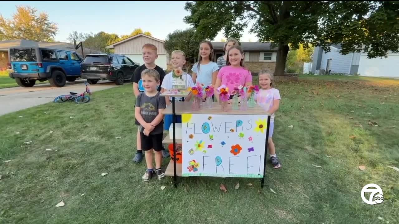 The community support is far-reaching. In Grand Blanc, 10-year-old Evelyn Baugh and a group of her friends are spreading hope by giving out flowers, collecting donations for the victims, and passing along notes of positivity throughout their neighborhood.
