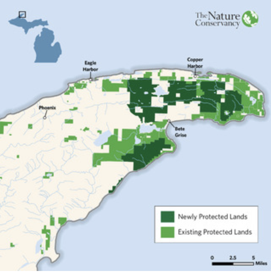 The Keweenaw Peninsula is one of the most unfragmented and climate-resilient forested and freshwater areas in the U.S., and The Nature Conservancy said it is a global priority for both biodiversity and climate resiliency.