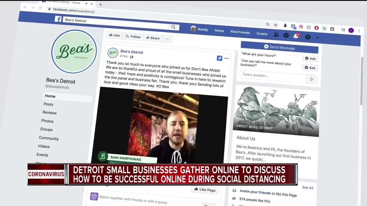 "This is such a scary time for small businesses," said Beatrice Wolerman, the owner of Bea's Detroit, a co-working space in Eastern Market, who hosted the Facebook Live summit Friday.