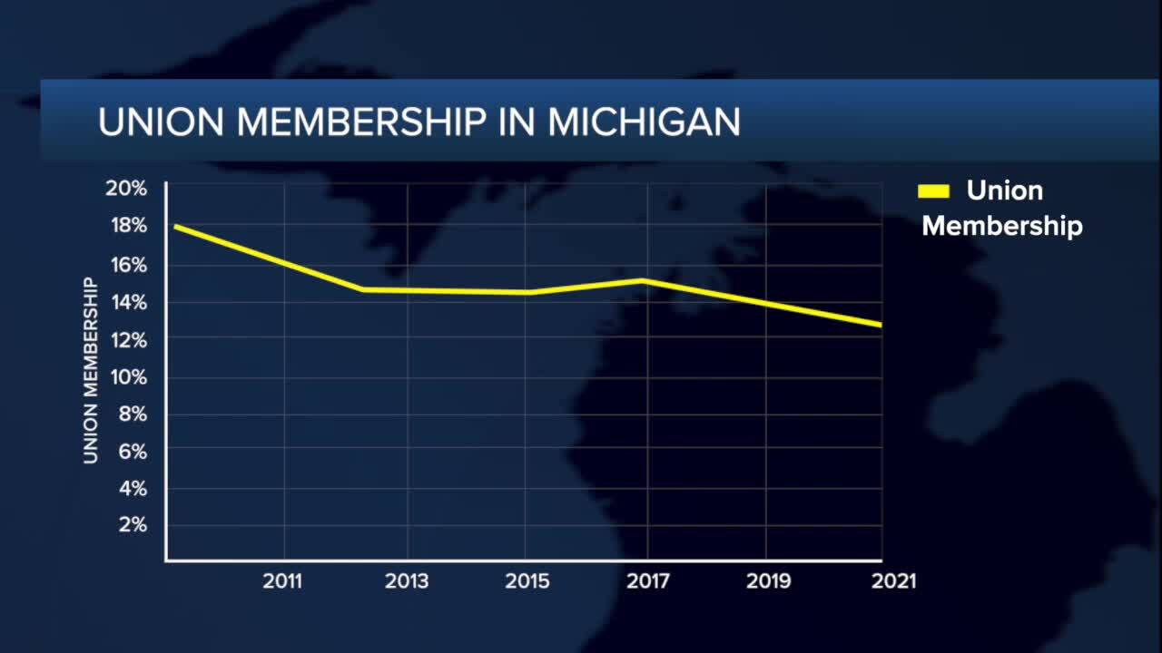 We charted Michigan’s union membership rates with Bureau of Labor Statistics data.