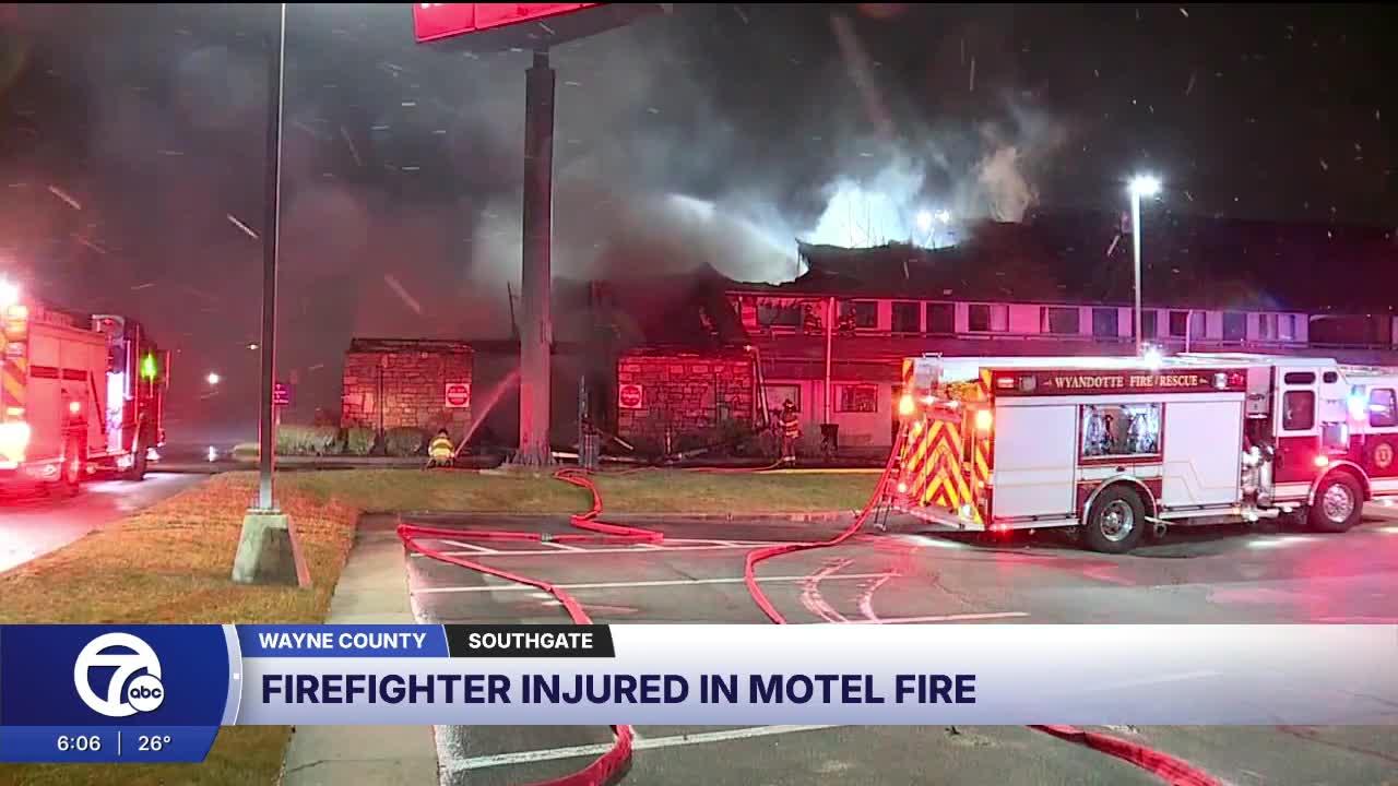 SOUTHGATE, Mich. (WXYZ) — A firefighter was injured Monday morning as crews were battling a fire at a Motel 6 in Southgate. The motel is located at 18777 Northline Road.
