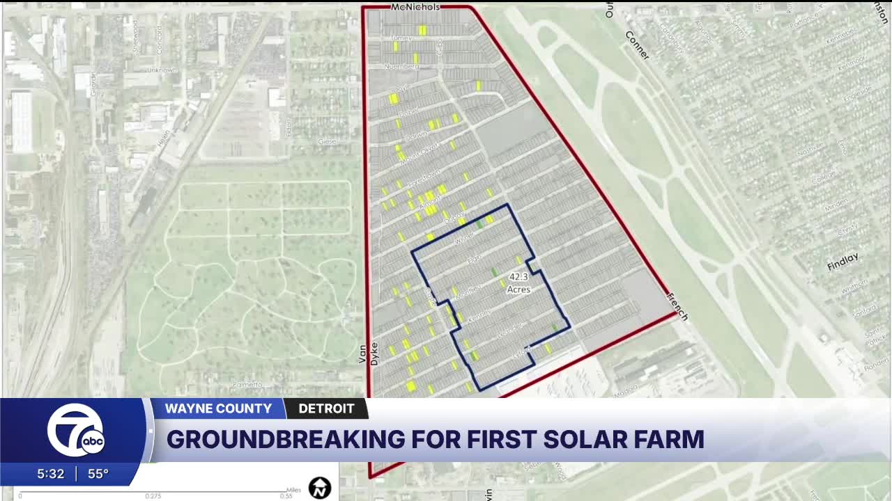 DETROIT (WXYZ) — Detroit took a major step forward in clean energy Monday as Mayor Mike Duggan, DTE Energy and community leaders broke ground on the city's first solar field under the mayor's Solar Neighborhoods Initiative.