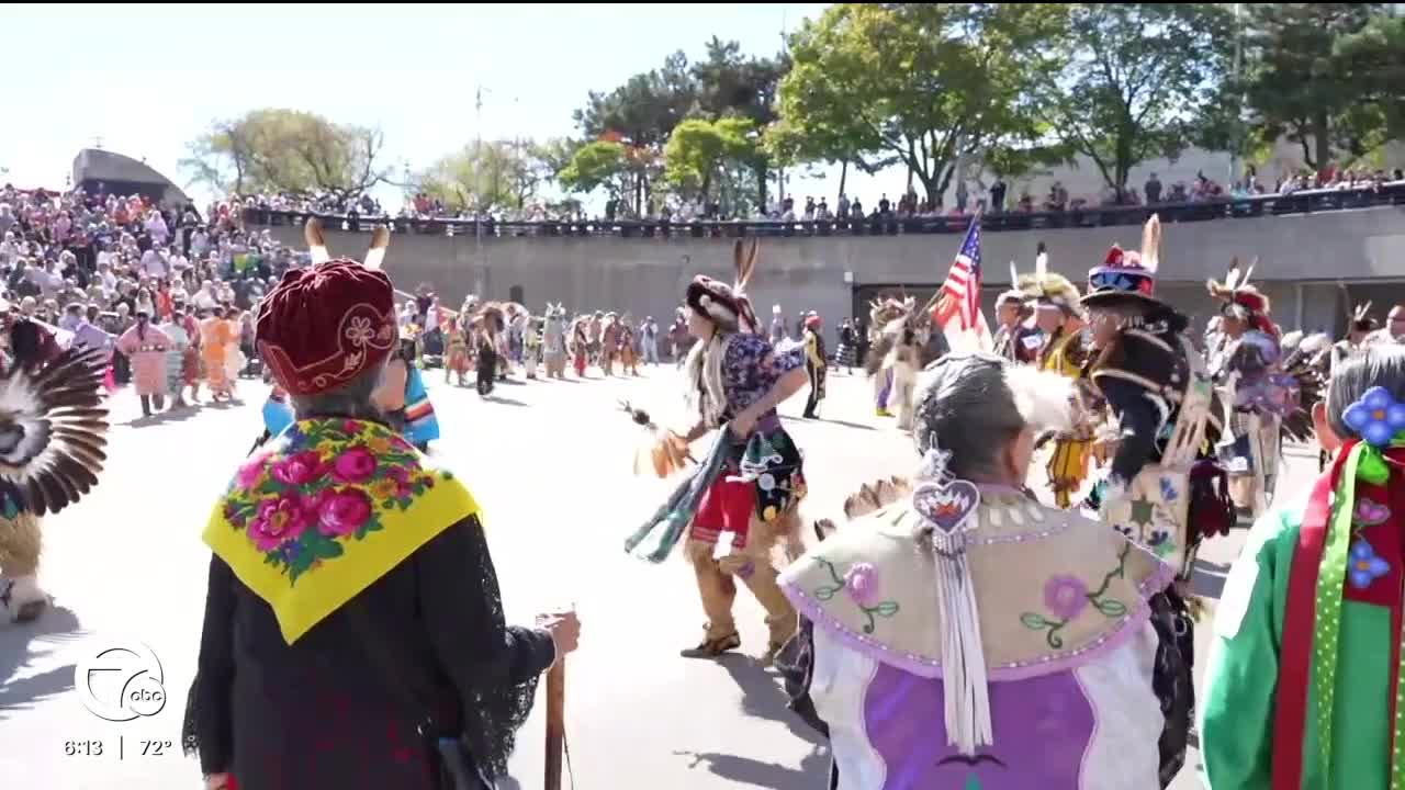 Hundreds of people gathered in Hart Plaza downtown for a powwow celebrating Indigenous People's Day. It marks the first time the event has been held there in 30 years.