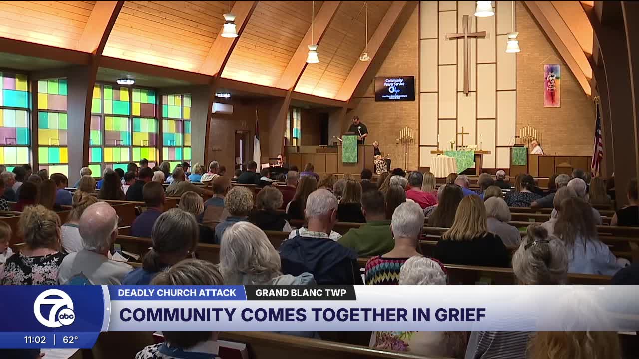 GRAND BLANC, Mich. (WXYZ) — Nearly 200 people packed the pews of Grand Blanc United Methodist Church Tuesday night for a joint prayer service, reflecting and grieving for their neighbors who witnessed tragedy just three days earlier when a gunman drove a truck through the doors of the Grand Blanc Church of Jesus Christ of Latter-day Saints, opened fire and set the building ablaze.