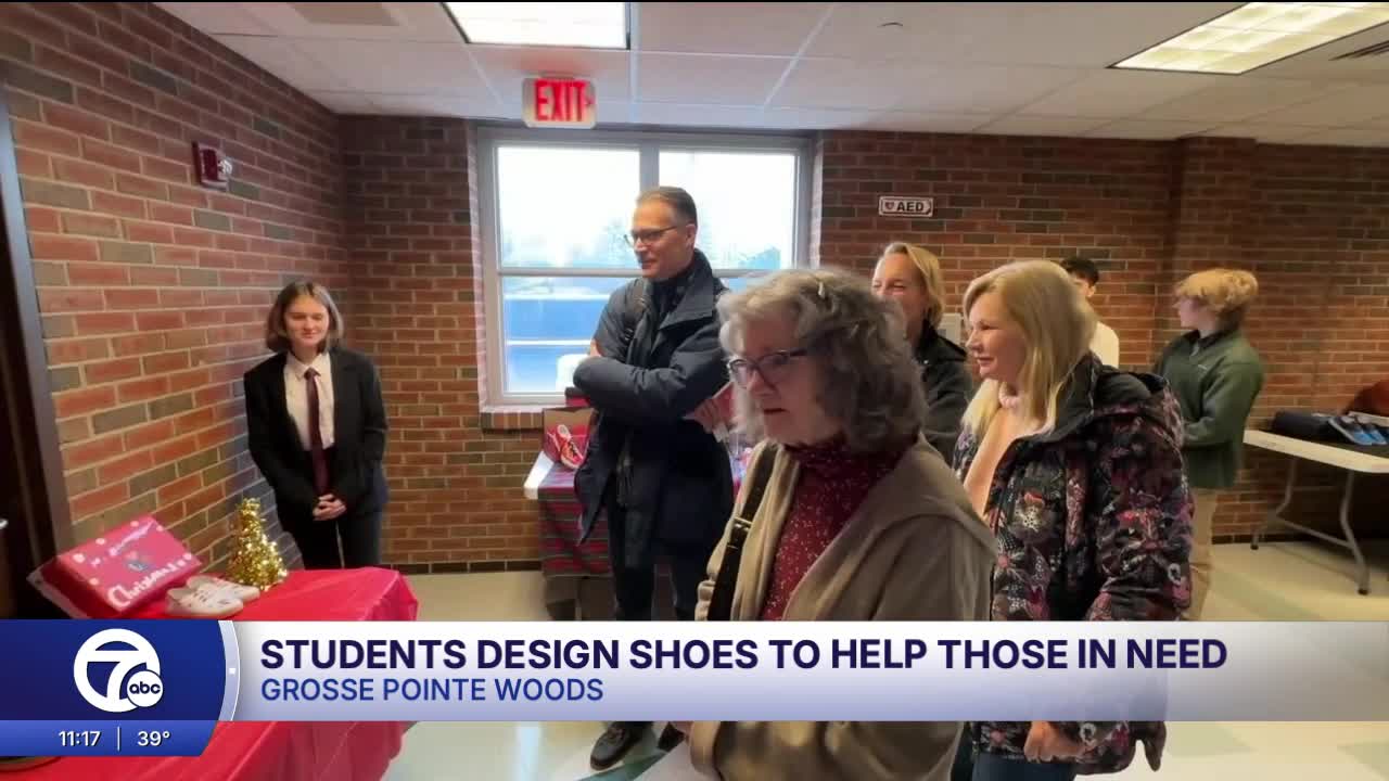 GROSSE POINTE WOODS, Mich. (WXYZ) — Students at Grosse Pointe North High School are proving that classroom learning can create real-world impact. On Tuesday, 56 students showcased the results of a semester-long project that combined creativity, business skills and community service by designing custom canvas shoes to donate to those in need.