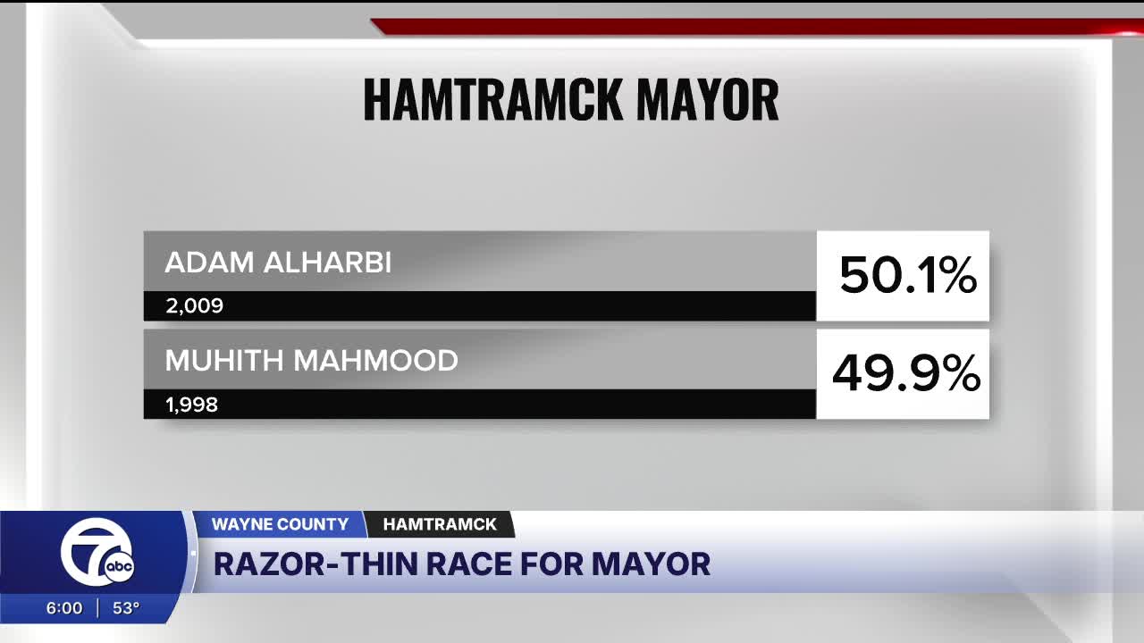 HAMTRACK, Mich. (WXYZ) — The Hamtramck mayoral race results are razor thin. Adam Alharbi leads Muhith Mahood by 11 votes, according to the city clerk.