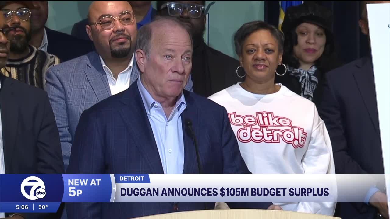 DETROIT (WXYZ) — Detroit Mayor Mike Duggan announced a $105 million budget surplus Monday, marking the city's 11th consecutive year of financial growth more than a decade after emerging from bankruptcy.
