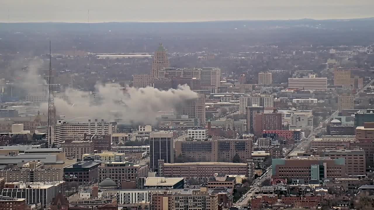 Video showed a massive plume of smoke coming from the building, located along Woodward Ave. just north of Warren, as well as flames coming out of windows.