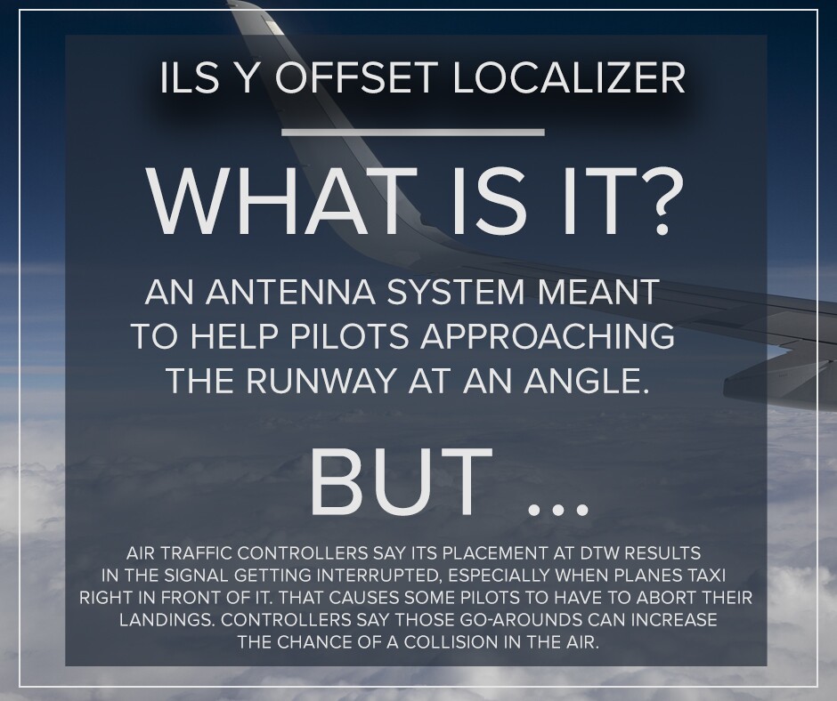 Air traffic controllers say the placement of the ILS Y offset localizer at Metro Airport results in the signal getting interrupted, especially when planes taxi right in front of it. That causes some pilots to have to abort their landings.