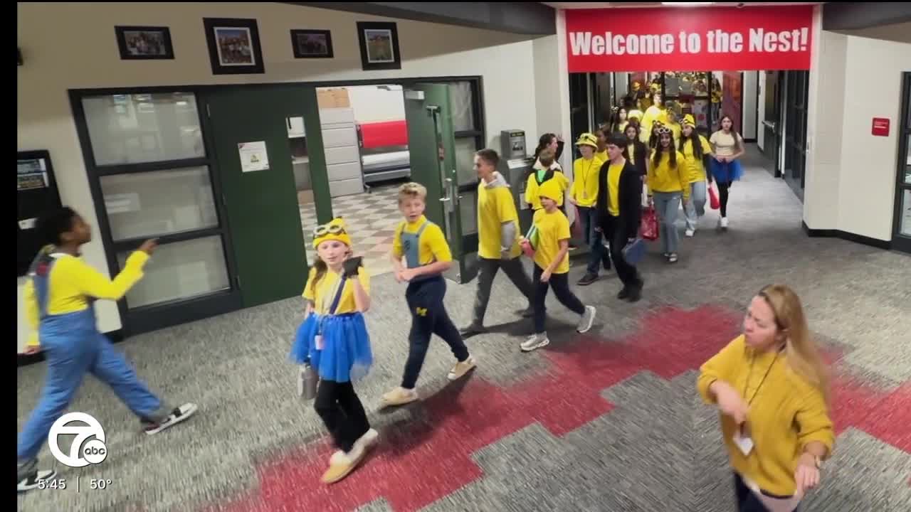 WEST BLOOMFIELD TOWNSHIP, Mich. (WXYZ) — Students at Walnut Creek Middle School in West Bloomfield Township traded their usual classroom attire for yellow shirts, blue overalls and goggles Thursday in an attempt to break the world record for most Minions in one place.
