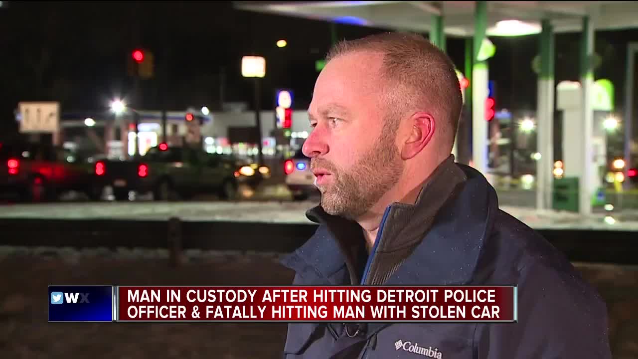 DETROIT (WXYZ) — A 39-year-old man is in custody after striking a Detroit Police officer and fatally striking another man with a car on the city's west side.