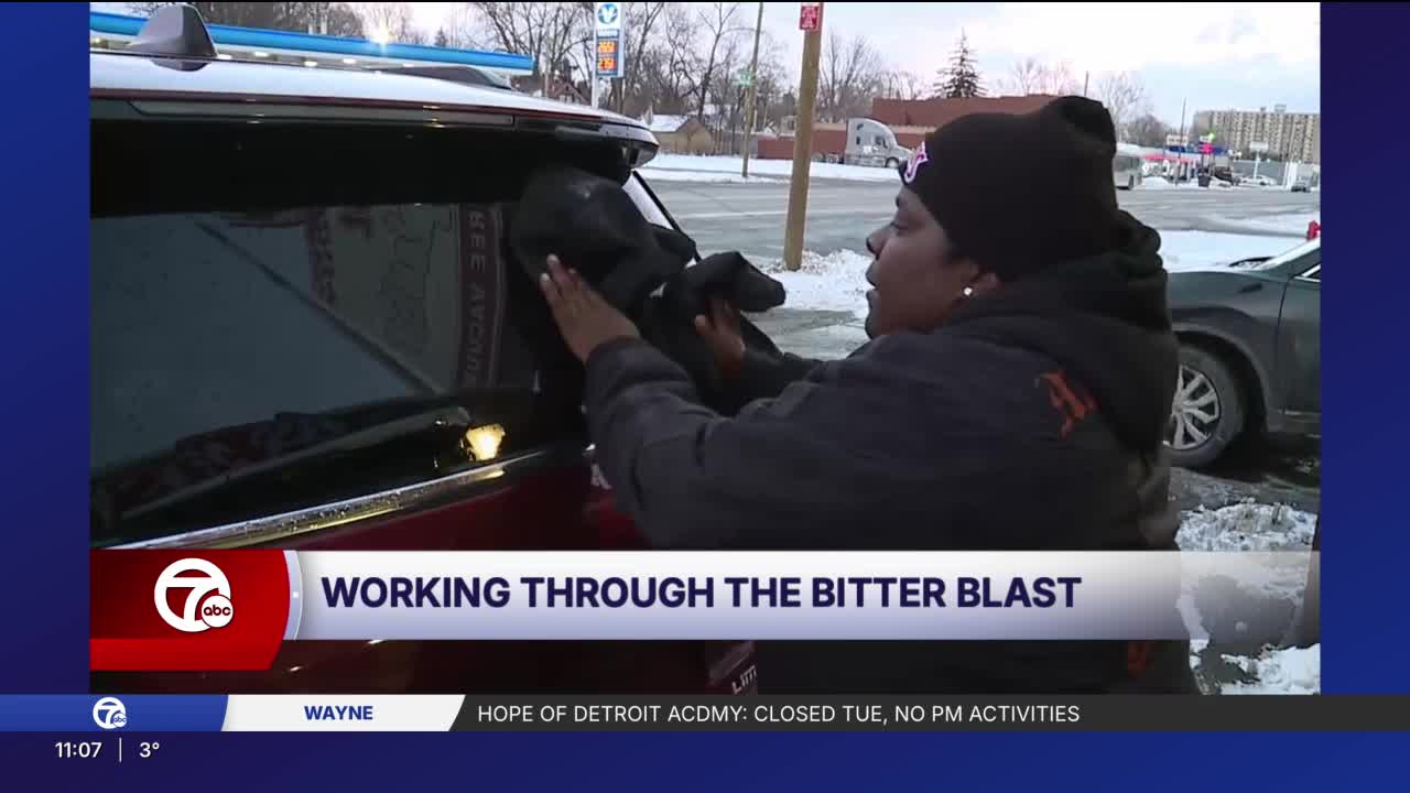 DETROIT (WXYZ) — In frigid temperatures and wind chills like what metro Detroit is experiencing this week, most enjoy the luxury of retreating indoors. However, for the people who clean our cars and keep our deliveries moving, it's another day at the office.