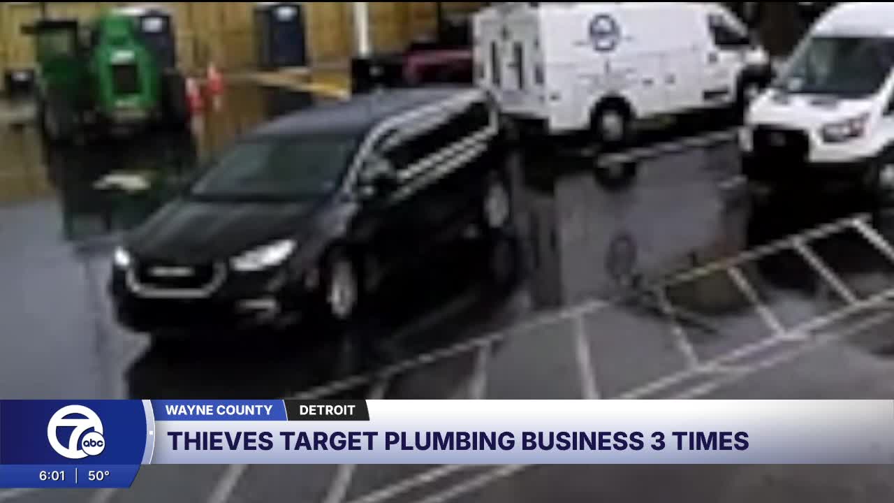 DETROIT (WXYZ) — Workers at family-owned plumbing company Shelby Mechanical say thieves have targeted their work trucks three times in just two months, with the latest theft caught on security cameras.