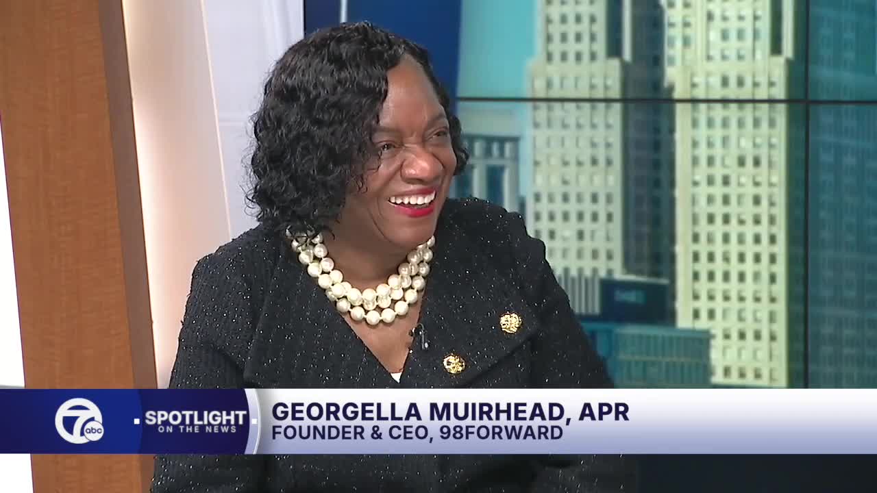 WXYZ DETROIT — On Sunday, November 16, Spotlight on the News will interview Detroit public relations expert Georgella Muirhead, APR, Co-Founder & CEO of 98Forward. Find out how she has impacted the civic and political landscape in her nearly 50 year career. And meet Detroit digital entrepreneur Arabia Simeon, Co-Founder of the new POGO (Politics on the Go) voting app and winner of the national Pull Up & Pitch business competition.