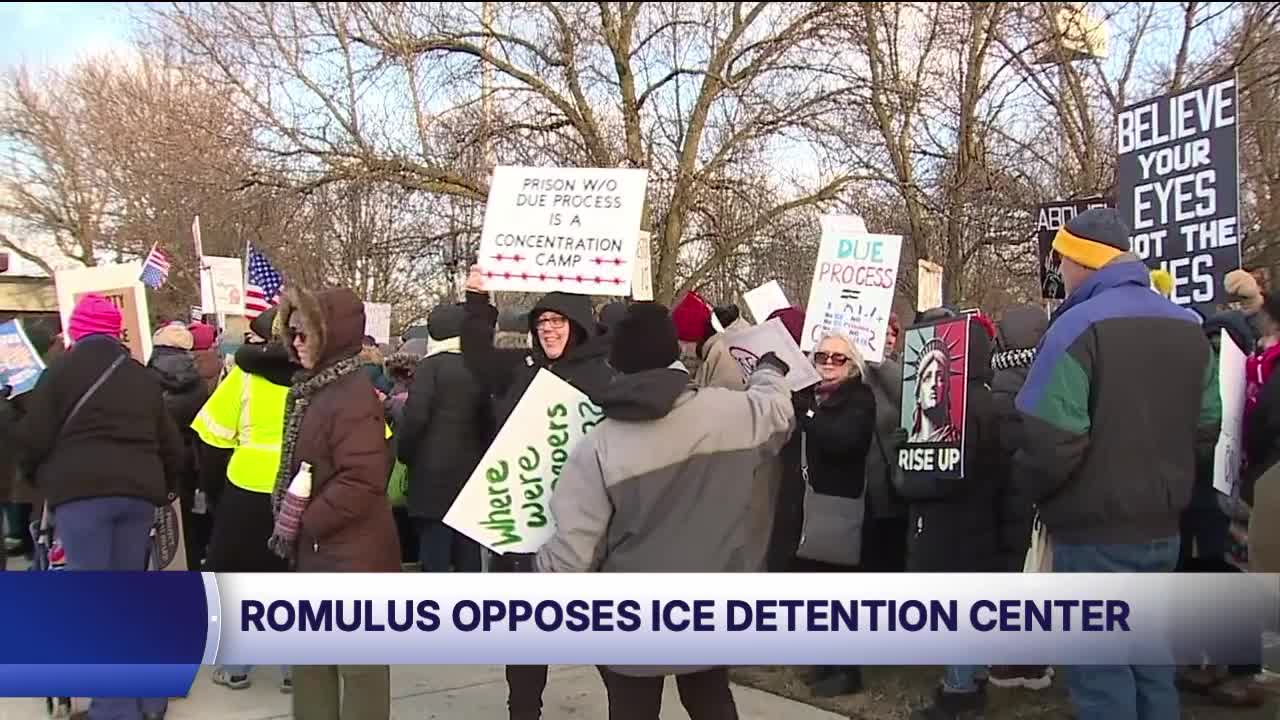 ROMULUS, Mich. (WXYZ) — Romulus leaders unanimously passed a resolution opposing an Immigration and Customs Enforcement facility plan Monday night after demonstrators clashed outside before a city council meeting.