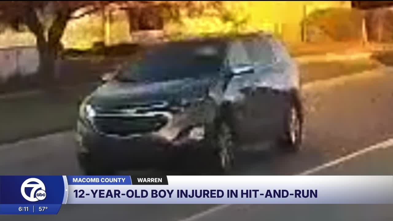 WARREN, Mich. (WXYZ) — A 12-year-old boy is recovering at Children's Hospital after he was severely injured in a hit-and-run crash in Warren. Police are asking for the public's help to find the driver who fled the scene.