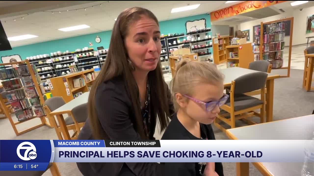 CLINTON TOWNSHIP, Mich. (WXYZ) — An 8-year-old Clinton Township student is grateful to be alive after her school principal performed the Heimlich maneuver to save her from choking on a water bottle cap.