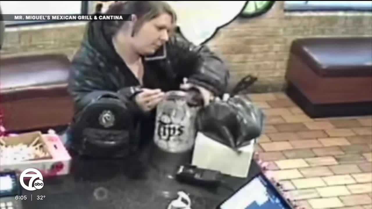 WARREN, Mich. (WXYZ) — A Warren restaurant has released surveillance footage showing a customer stealing a tip jar containing about $30 meant for teenage hostesses at Mr. Miguel's Mexican Grill and Cantina.