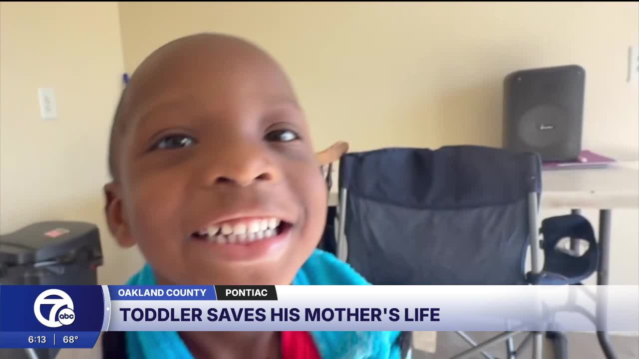 PONTIAC, Mich. (WXYZ) — A 3-year-old boy in Pontiac is being hailed as a hero after his quick thinking potentially saved his mother's life when she collapsed during a seizure Thursday afternoon.