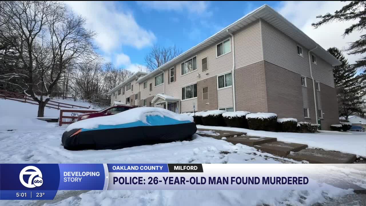 (WXYZ) — A quiet Milford community is reeling after a 26-year-old man was found murdered inside his apartment on Wednesday afternoon, with police saying this was no random crime.