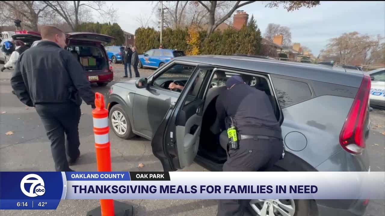 OAK PARK, Mich. (WXYZ) — Hundreds of families lined up for hours in Oak Park as the city partnered with first responders, the Chaldean American Chamber of Commerce and Forgotten Harvest to provide complete Thanksgiving meals for those experiencing food insecurity this holiday season.