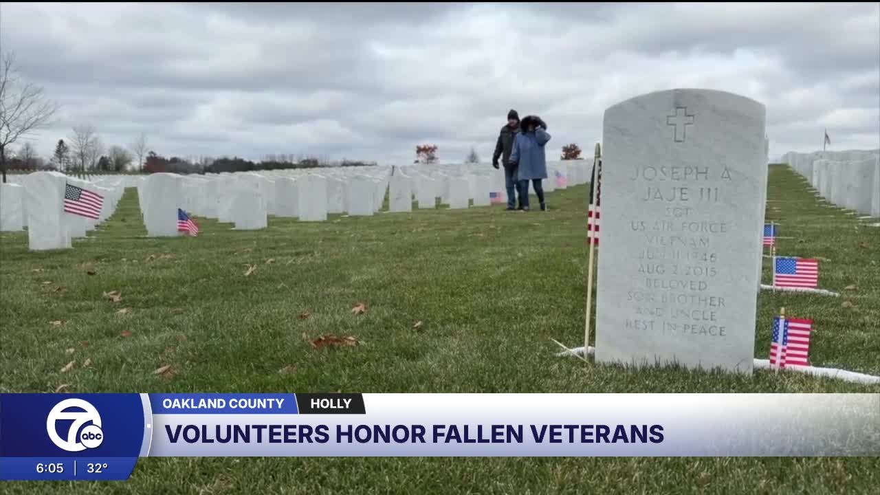 HOLLY, Mich. (WXYZ) — Volunteers stepped up to help honor service members at Great Lakes National Cemetery in Holly after the official Veterans Day ceremony was canceled due to a government shutdown.