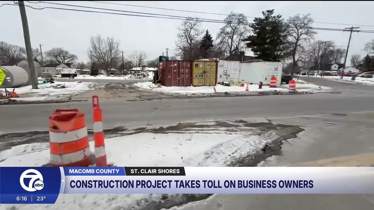 ST. CLAIR SHORES, Mich. (WXYZ) — A sewer construction project on Jefferson Avenue in St. Clair Shores is squeezing local businesses as it enters its second year, with one business reporting a revenue drop of up to 45%.
