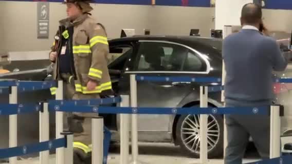 Witnesses say they heard a loud noise as the car slammed through the entrance and into the Delta Air Lines desk as employees were working. A witness says the driver got out of the vehicle with his hands raised and talking, though it's unclear what the driver was saying.