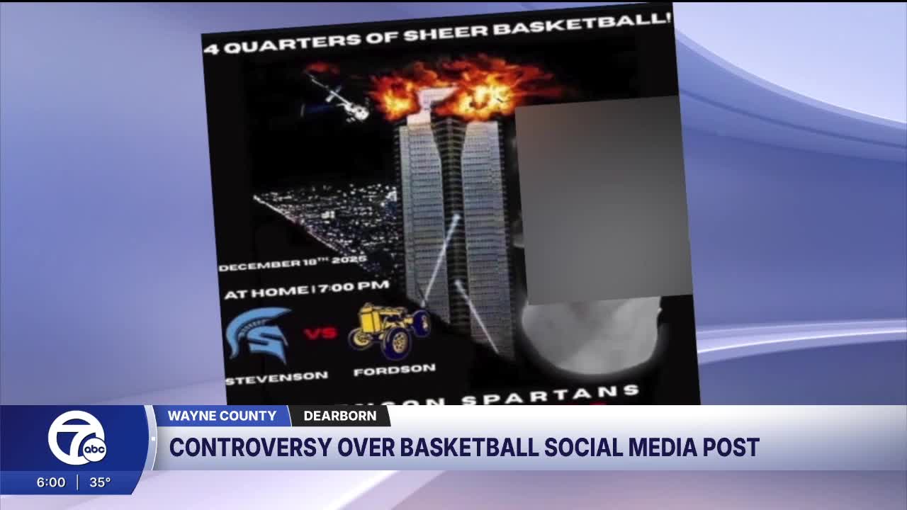 DEARBORN, Mich. (WXYZ) — A social media post promoting a high school basketball game between Livonia Stevenson and Dearborn's Fordson has sparked controversy in the community, with Arab and Muslim families saying the image was culturally insensitive while the district maintains it was a misunderstood movie reference.
