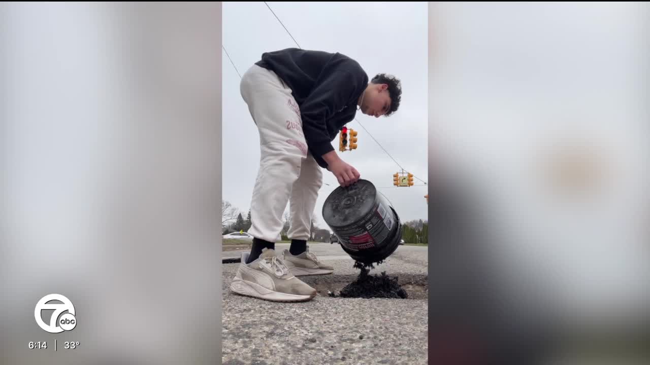 18-year-old fixes pot holes on Cherry Hill Road in Dearborn by himself