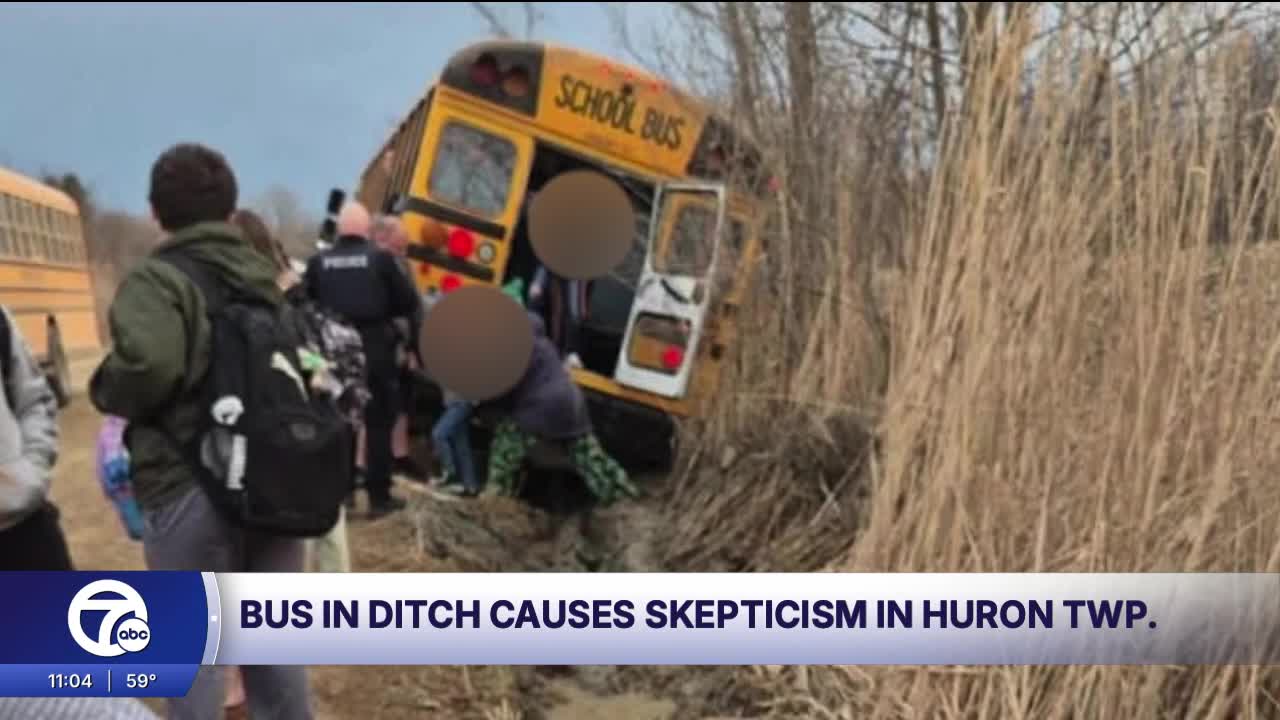 According to Huron Township police, the crash happened around 8:36 a.m. Police say the driver was traveling on the right side of Clark Road, trying to avoid potholes, when the road gave out and sent the bus into a ditch.