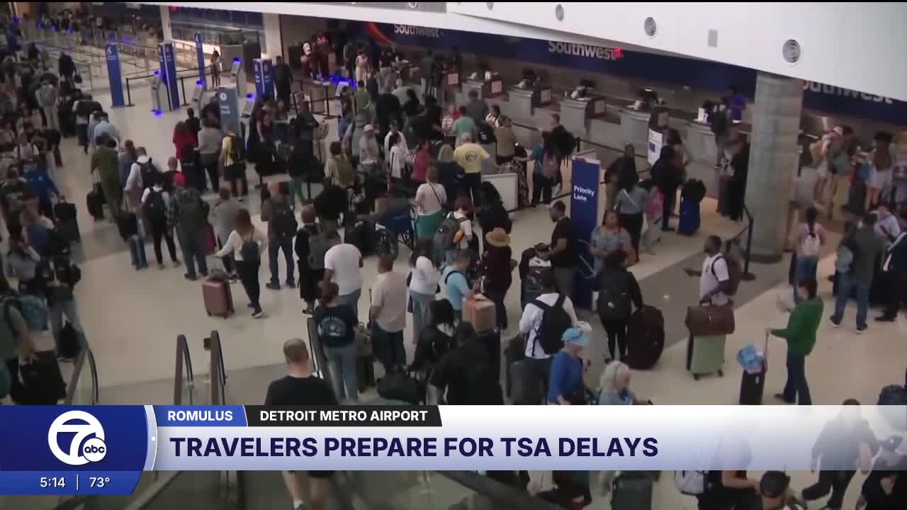 METRO AIRPORT (WXYZ) — Some travelers heading out for spring break are waiting in security screening lines for hours at airports across the country as a partial government shutdown over funding for the Department of Homeland Security continues to impact TSA staffing.