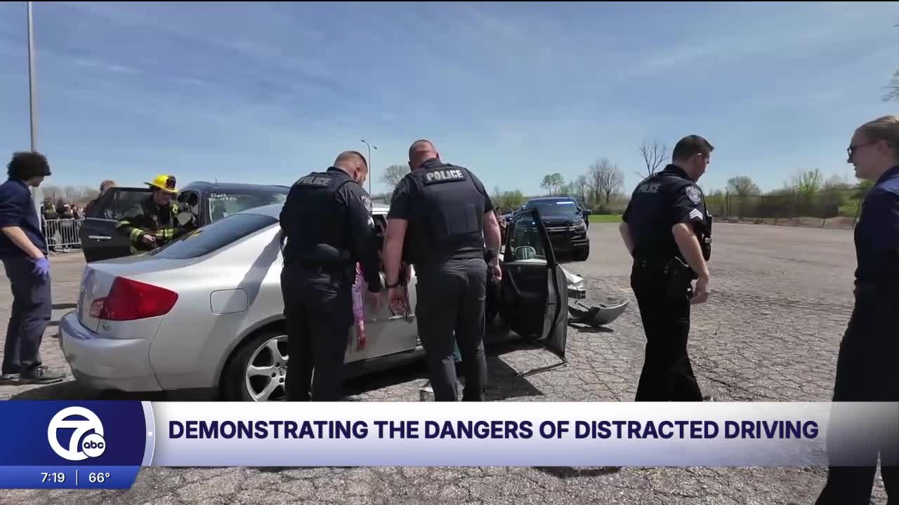 TAYLOR, Mich. (WXYZ) — About 300 seniors at Taylor High School watched a realistic distracted driving demonstration on Monday, complete with blaring sirens, a full-scale rescue, and a staged transfer to a hearse.