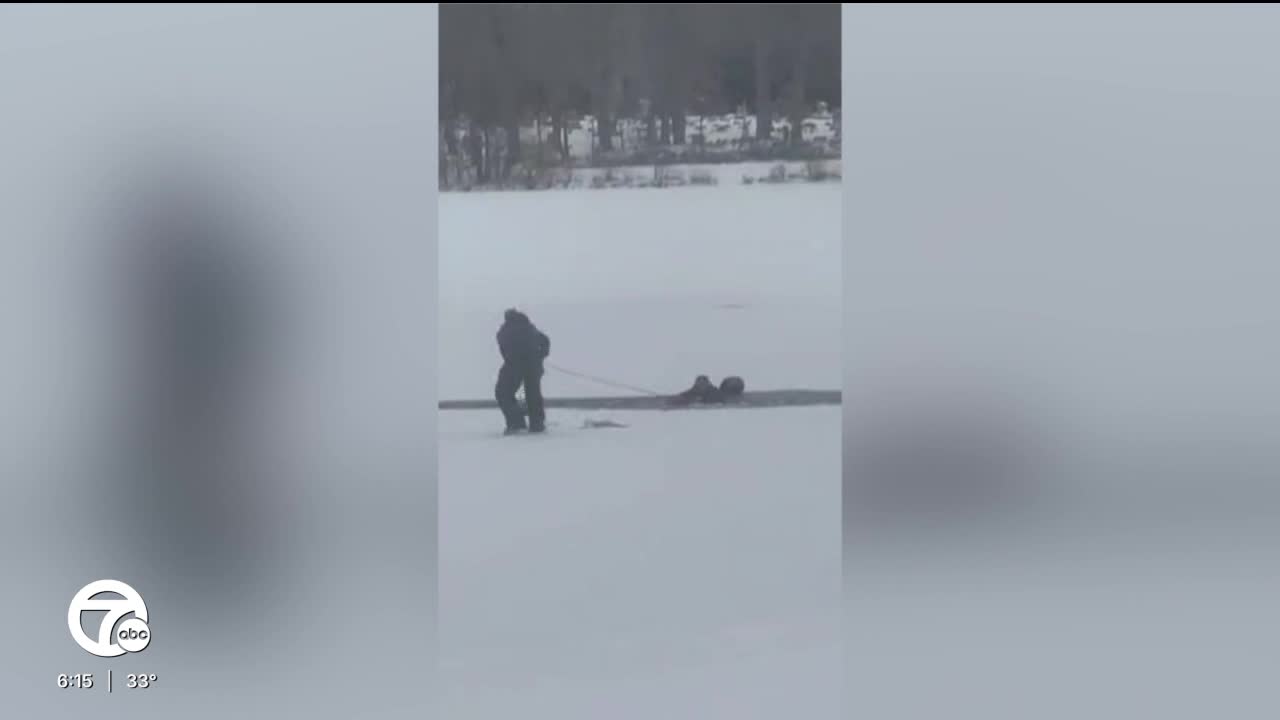 HOLLY, Mich. (WXYZ) — A 36-year-old man is grateful to be alive after his snowmobile fell through the ice on Bush Lake in Holly, and he credits a good Samaritan with saving his life.