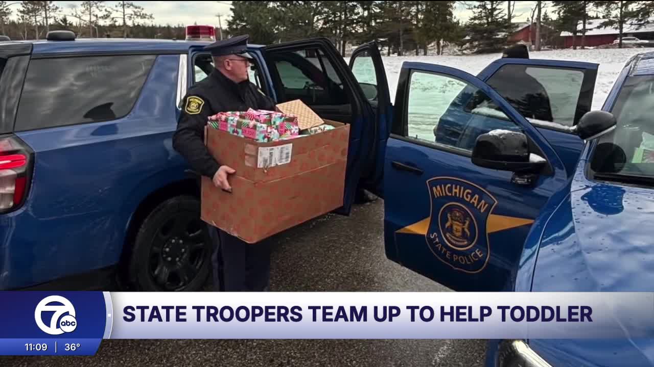 ANN ARBOR, Mich. (WXYZ) — State troopers drove 600 miles to deliver Christmas gifts to a 2-year-old girl battling cancer at Mott Children's Hospital in Ann Arbor, turning a simple conversation into an incredible act of holiday kindness.