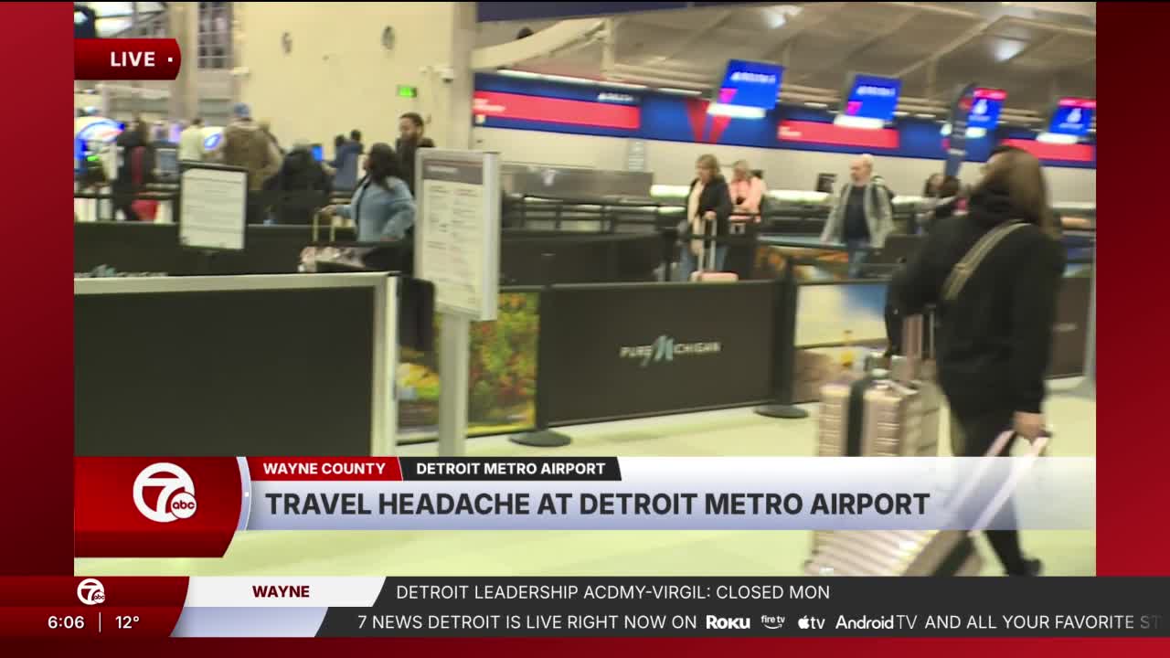 ROMULUS, Mich. (WXYZ) — We've been tracking flight disruptions because of the winter storm; as of 6 a.m. Monday morning, there has already been 30 flight delays and 88 cancellations. This is going to be the second day of major disruptions, as yesterday, there were 370 delays and 290 cancellations due to the winter storm sweeping across the country.
