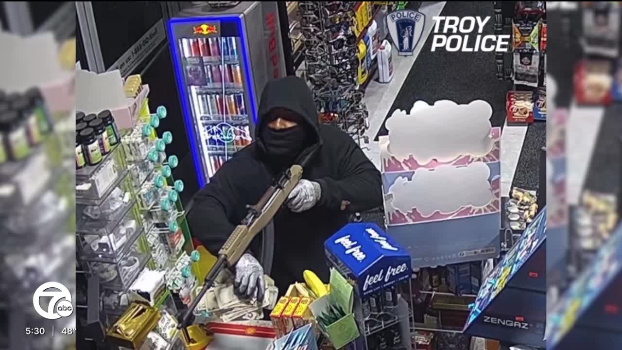 Troy police are searching for a man who they say walked into a gas station with an AK-47-style rifle last week and demanded money from the clerk.