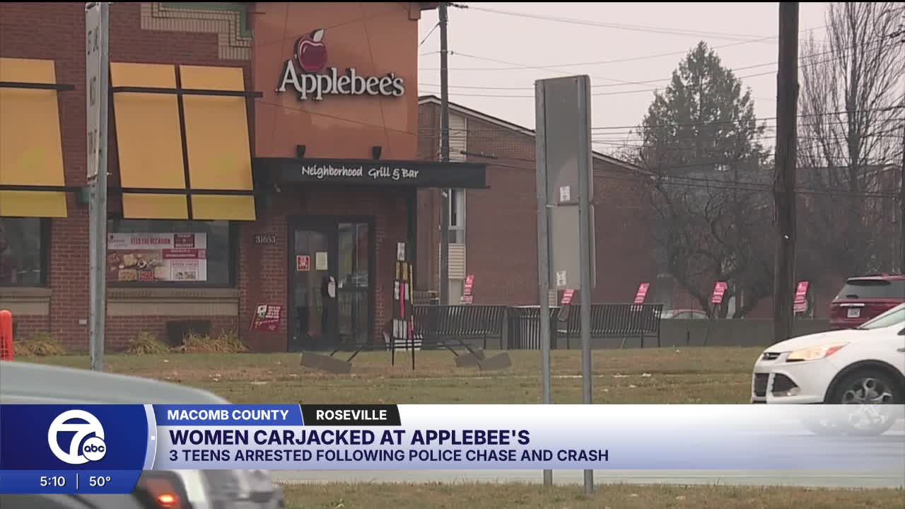 The incident happened on Monday on Gratiot just north of 13 Mile Road, starting at an Applebee's restaurant where two women had just finished eating when three young men approached them at knifepoint, demanding they hand over their keys.