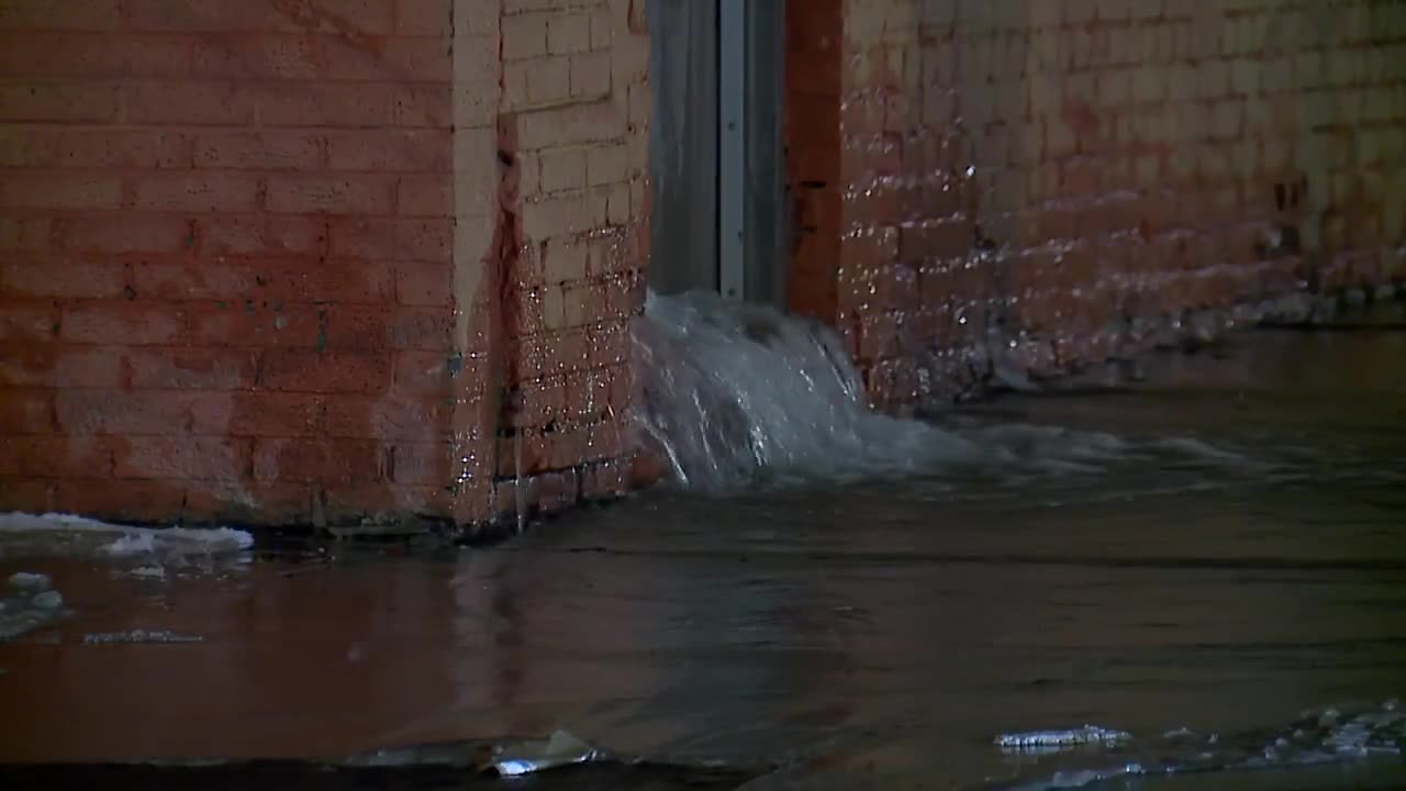 He said he came to check it out and saw water gushing out of the building.