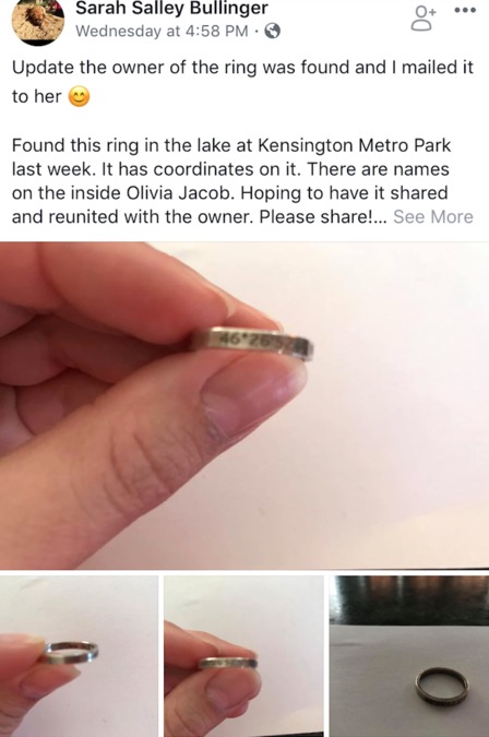 Bullinger decided to put the ring on Facebook in hopes of finding the owner.