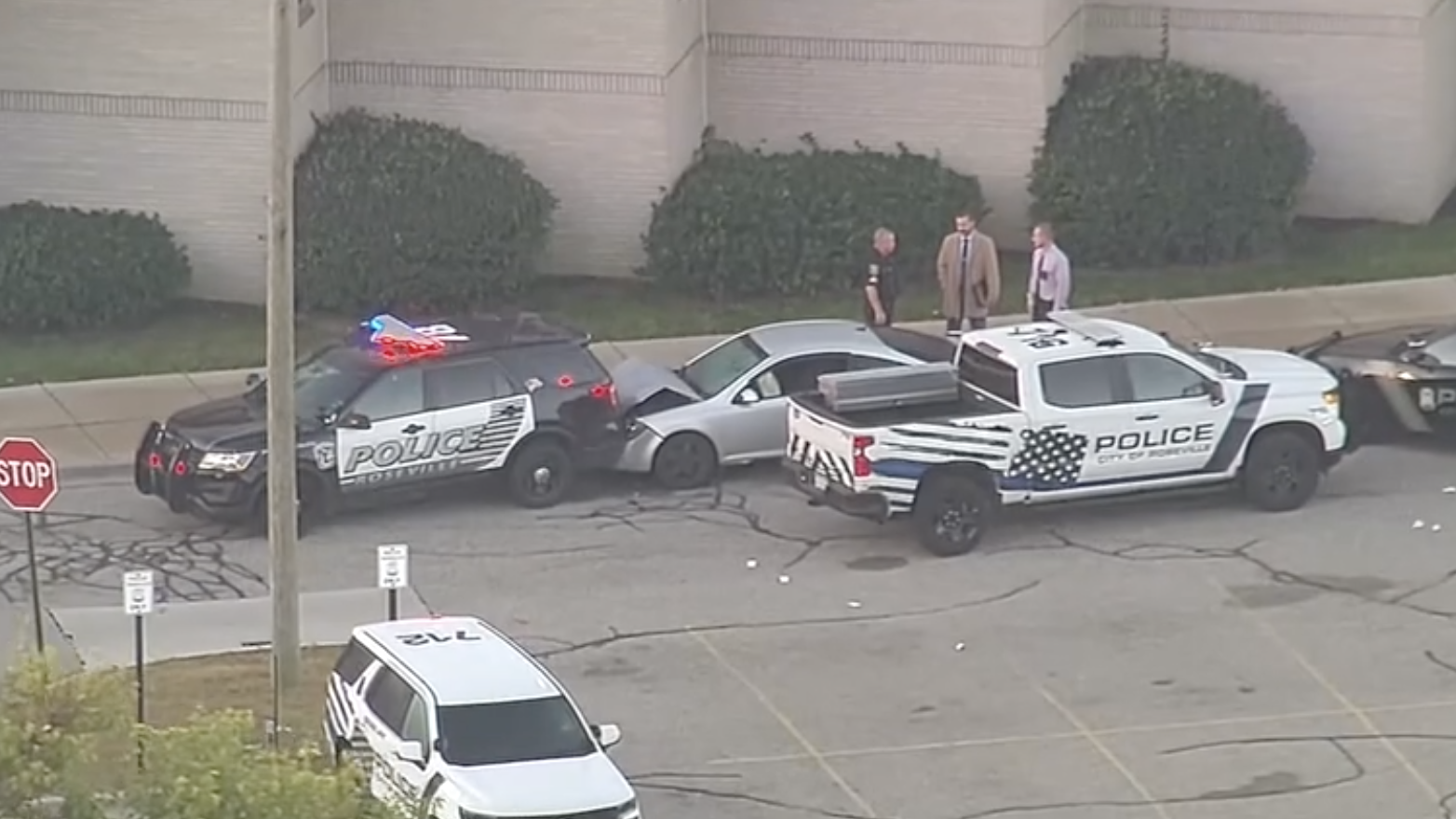 Man shot after ramming patrol vehicle, wielding knife outside Roseville PD