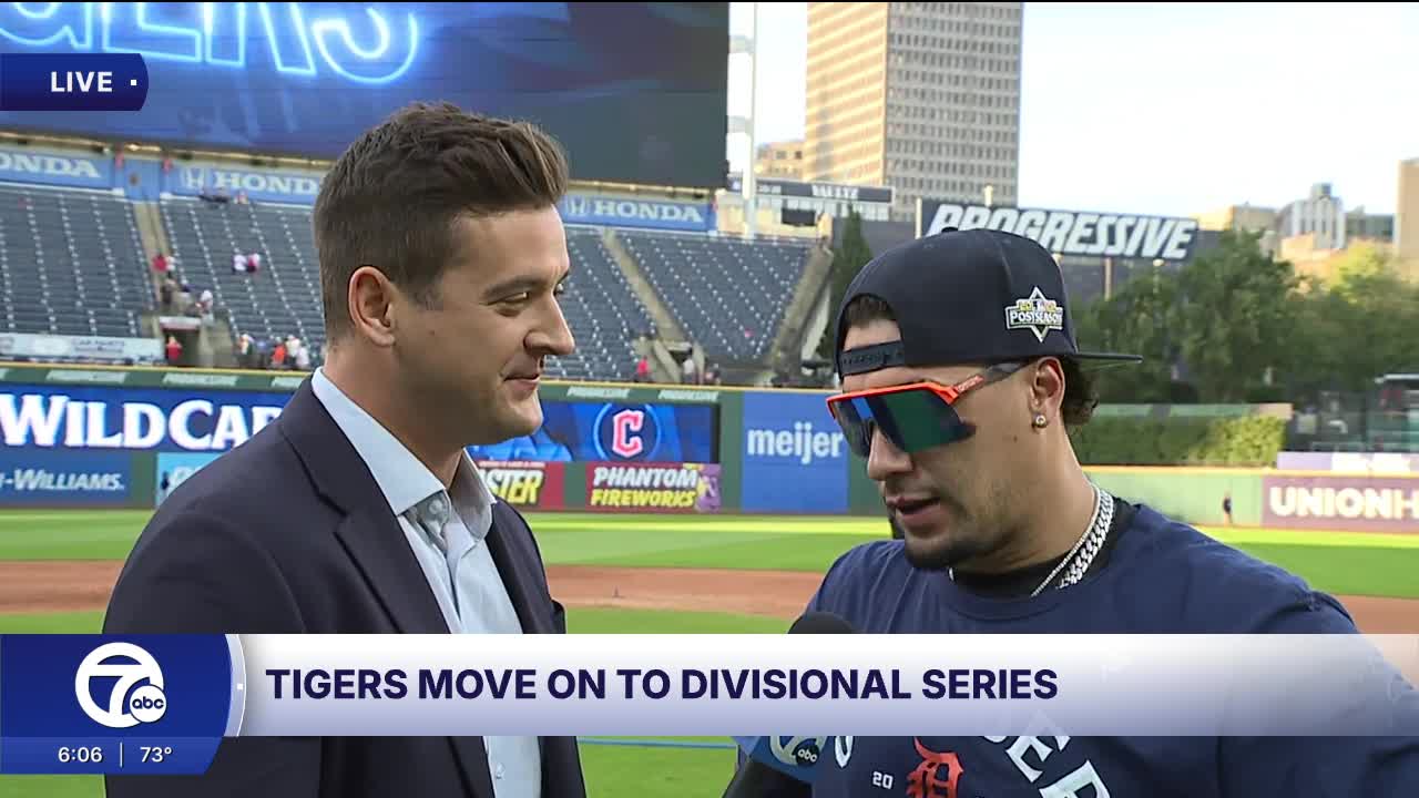 CLEVELAND — Tigers shortstop Javier Baez talked live on 7 News Detroit with Brad Galli as the team celebrated the Wild Card series win over the Guardians.