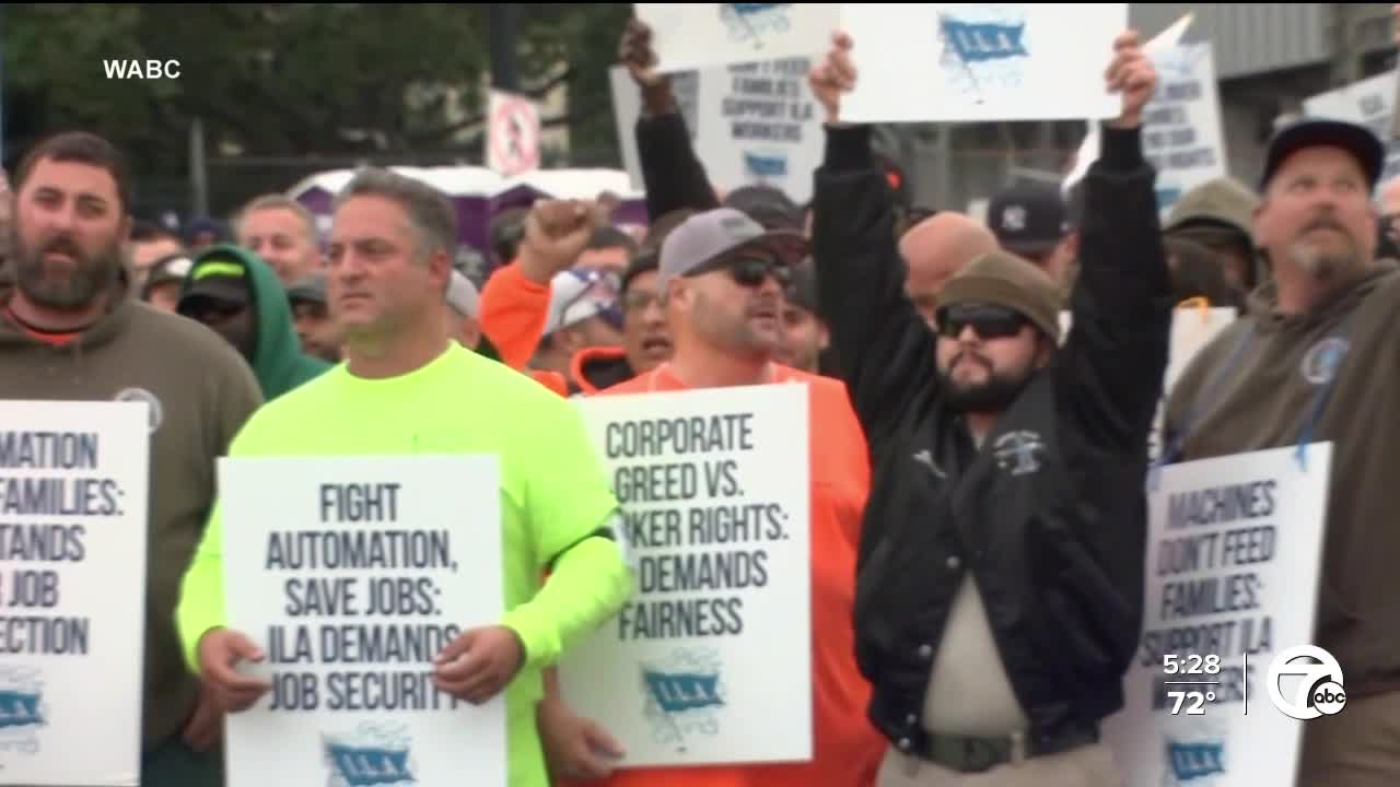 The union went on strike early Tuesday after its contract expired in a dispute over pay and the automation of tasks at 36 ports stretching from Maine to Texas. The strike came at the peak of the holiday shopping season at the ports, which handle about half the cargo from ships coming into and out of the United States.