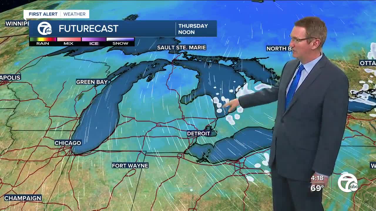 Tonight: Breezy with scattered showers. Up to 0.20" possible with most areas a little less than that. Low of 41 and winds turn to the WNW at 10-20 mph.