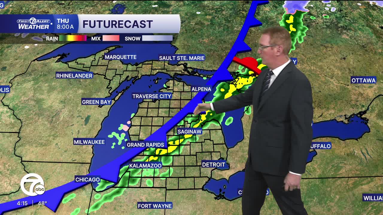 Today: Partly to mostly sunny. Highs in the low to mid 50s with 55° in Detroit. Winds: SE 10-20 mph.