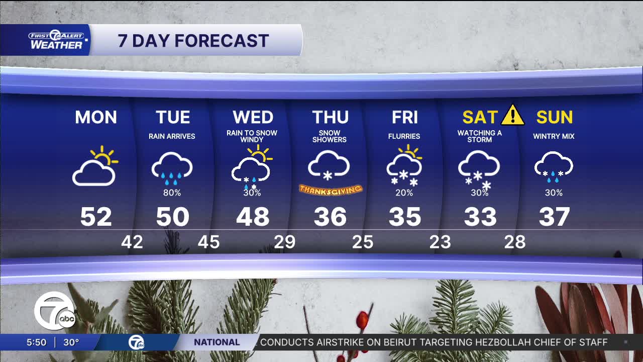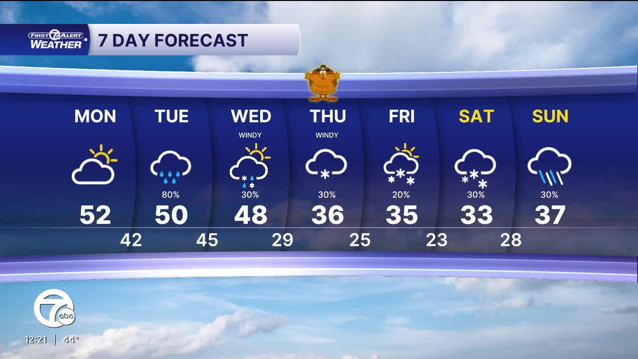 Then comes Thanksgiving Day, where highs will continue to plunge into the mid-30s with windy conditions and mostly cloudy skies — quite a change from earlier in the week. Snow showers are possible thanks to lake-effect snow in the area, so beware of slick roads in spots. By Black Friday, the chill firmly settles in, with highs in the mid-30s and wind chills in the teens and 20s. If you have travel plans, outdoor activities, or any property work this week, the window of mild weather is today - after that, expect cooler, damp and more winter-like conditions to follow.