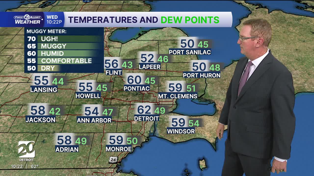Thursday: Partly sunny with highs in the low to mid 70s and 74° in Detroit. Winds: SE 5-10 mph.