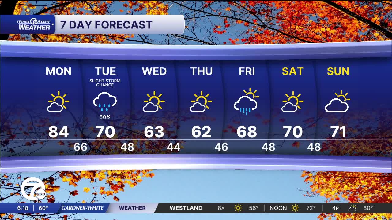 Tuesday: Showers are back with some storms possible. Highs near 70°. Winds: SW/NW 5-10 mph.